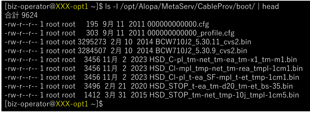 バイナリ形式のDOCSISコンフィグファイルは、XXX-opt[12]の下記フォルダに保管されています。